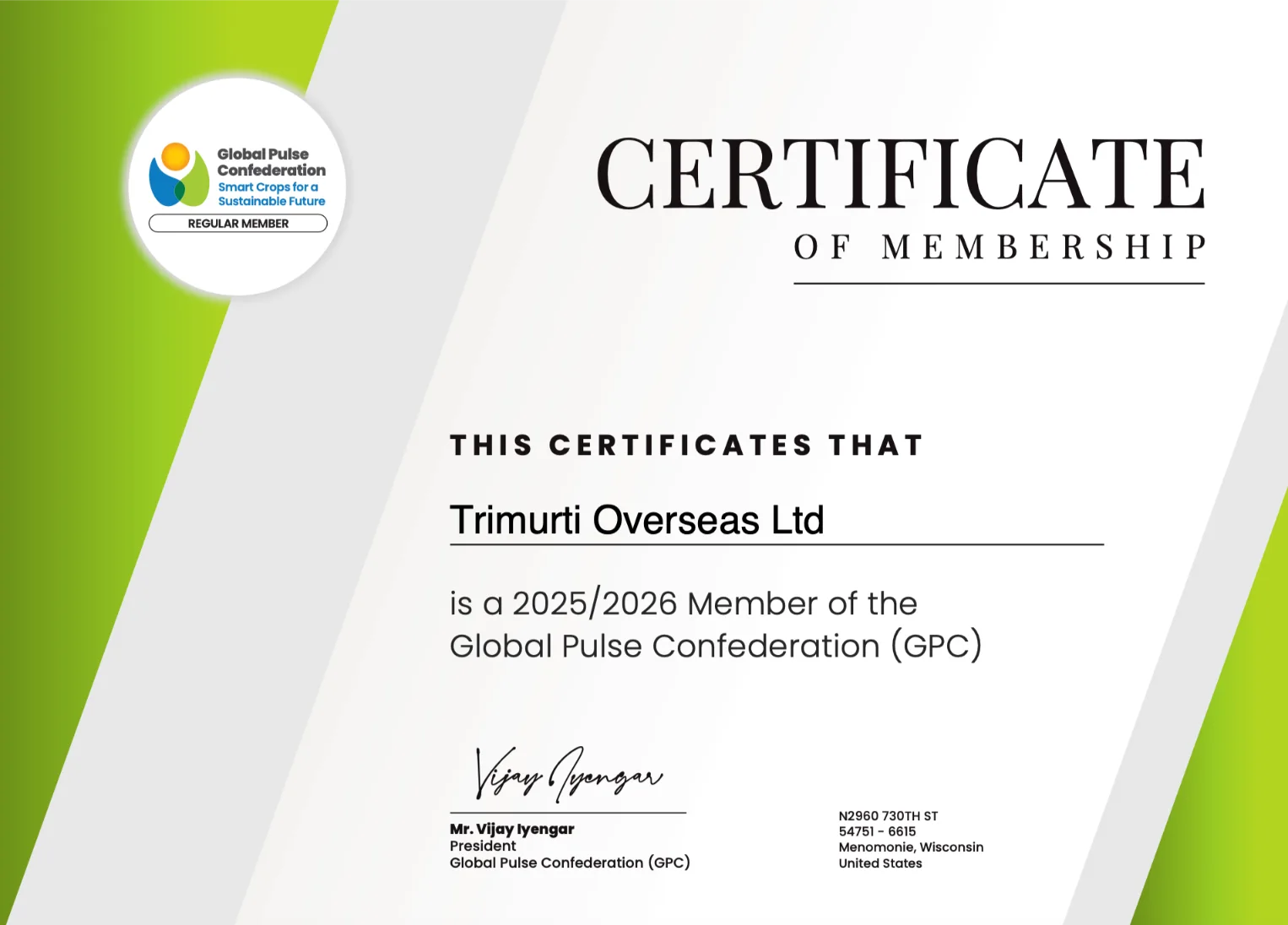 Global Pulse Confederation – international membership in the global pulses trade network.