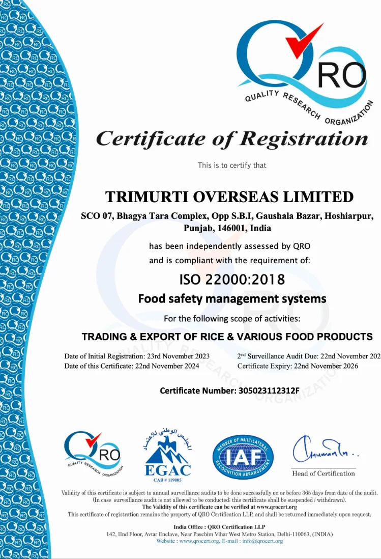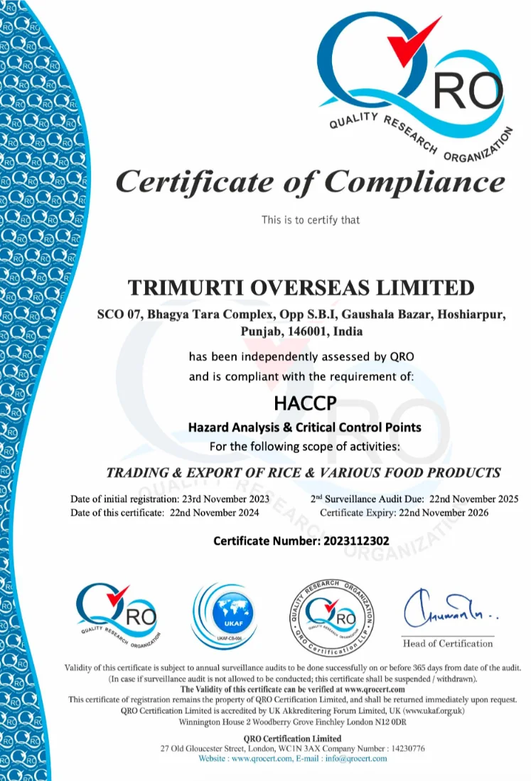 TPC Certification – ensuring compliance with international food safety and export requirements.